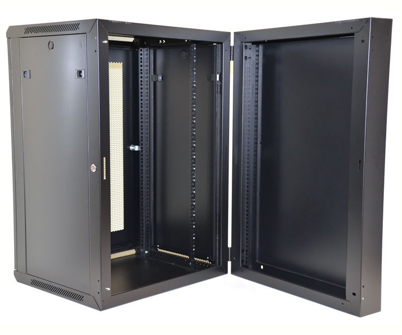 This Wall Mount Enclosure Cabinet isexcellent for use with various types of electronic equipment and ideal for use where floor-space is limited, including classrooms, homes, small offices and telecom rooms. Itis made of a highly durable, welded frame and has a turning angle on the front doorof over 180 degrees. A cooling fan can be installed on the top cover of the cabinet to increase air circulation and increase cooling.