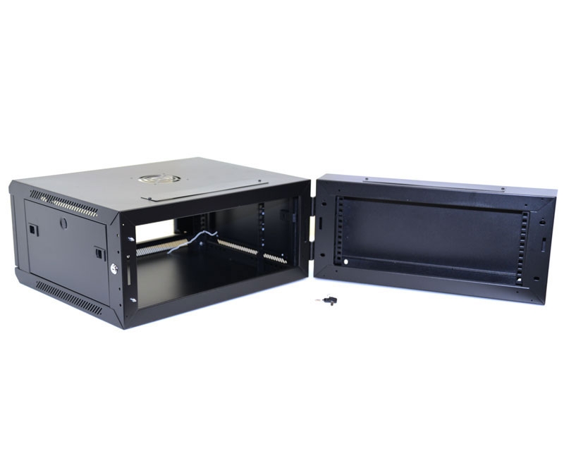 This Wall Mount Enclosure Cabinet isexcellent for use with various types of electronic equipment and ideal for use where floor-space is limited, including classrooms, homes, small offices and telecom rooms. Itis made of a highly durable, welded frame and has a turning angle on the front doorof over 180 degrees. A cooling fan can be installed on the top cover of the cabinet to increase air circulation and increase cooling.